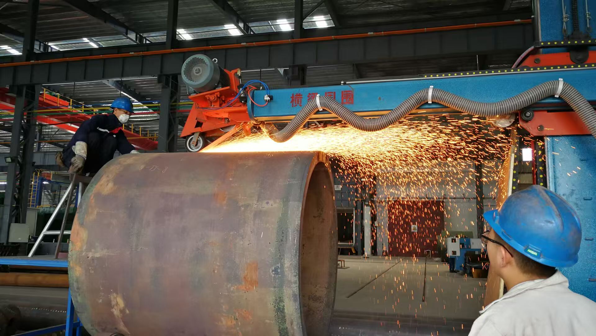 該設備主要用于大、中型焊接鋼管、罐體焊縫的磨削加工。適合內外直焊縫、環焊縫打磨拋光。生產效率高,勞動強度低,焊縫打磨效果好,且不傷管材本體,是打磨焊接鋼管管端直焊縫的理想設備。